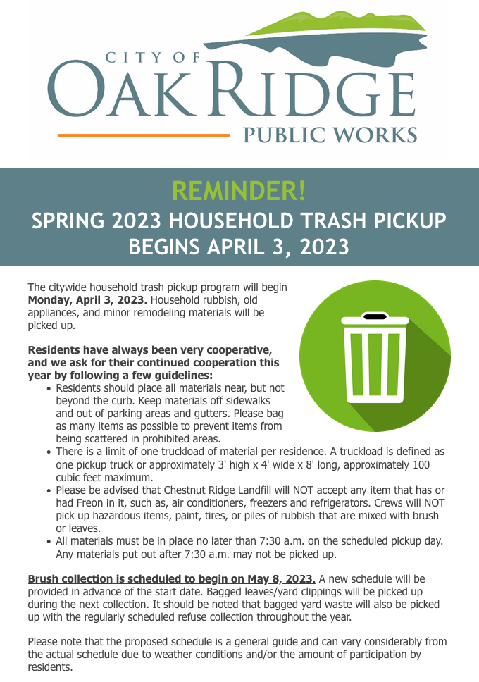 Oak Ridge 2023 household trash pickup
